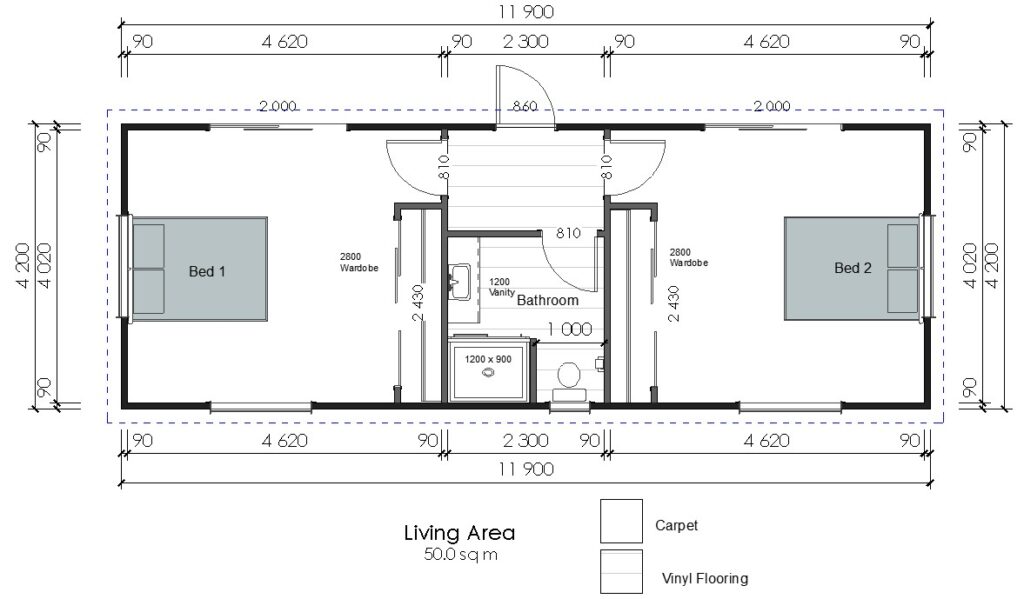 Choose from a 1 bedroom prefab cottage, two or three-bedroom options, all with a clever use of space, open-concept living, dining, and kitchen, and a well-appointed bathroom-laundry. The shell only Cottages basic plan gives you the option of finishing the exterior and interior cabinetry, furnishings, appliances, and fittings to your standards. All designs include contemporary double glazed windows, a double sliding front door, and your choice of cladding. You’ll appreciate the efficient use of space and the abundance of natural light provided by the mono pitch or gable roof.